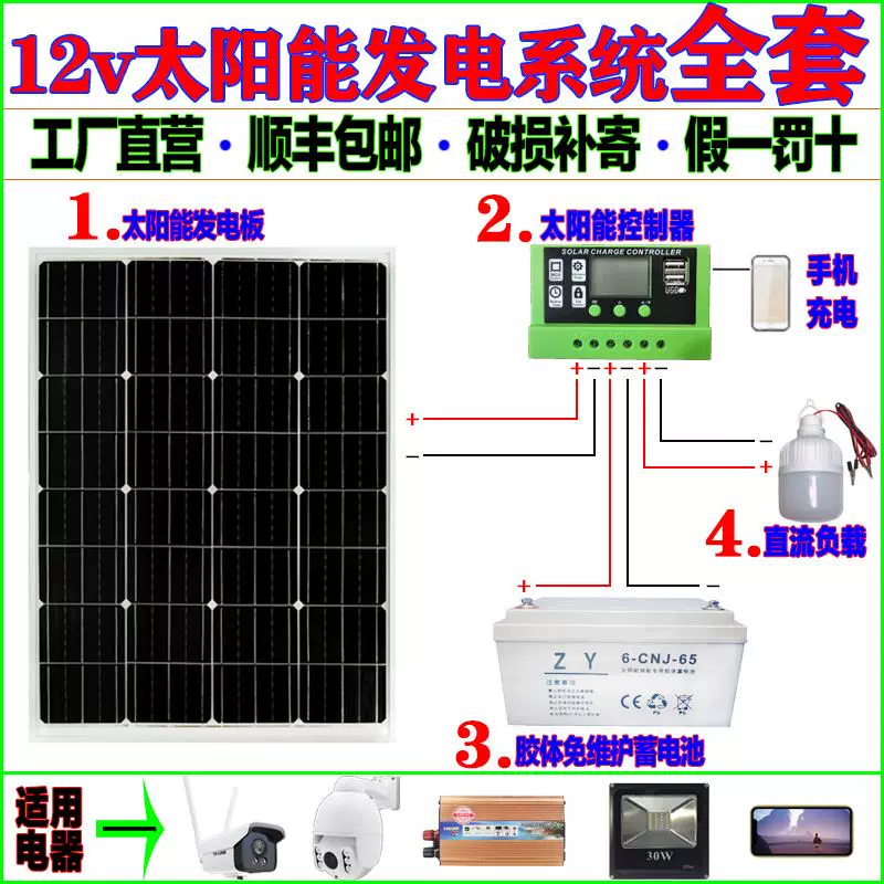 single produce electricity board 12v100w battery board charge board 300 W system full set