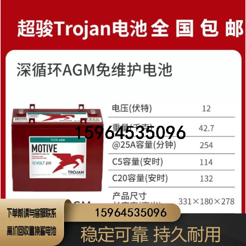 Trojan storage battery T1275-AGM 12V132AH storage battery